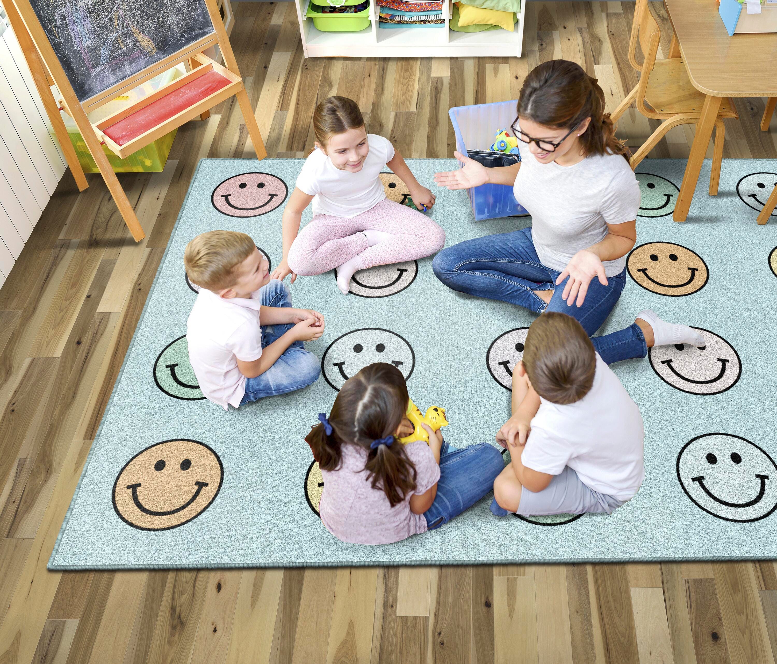 • Flagship Carpets Rainbow Smileys Criss Cross Applesauce Carpet, Rectangle