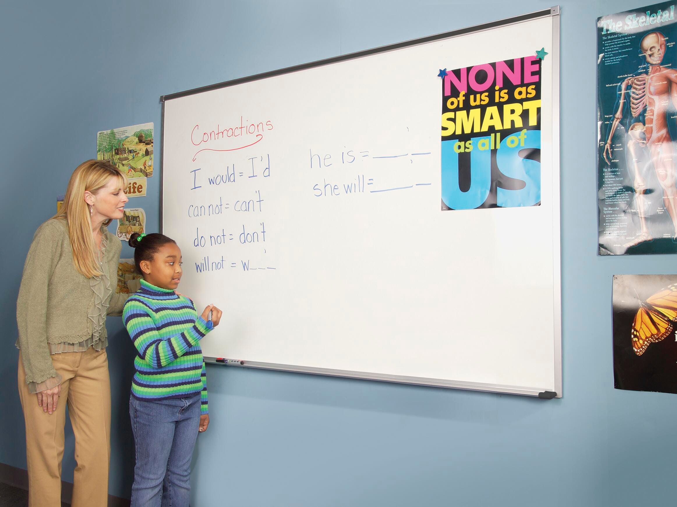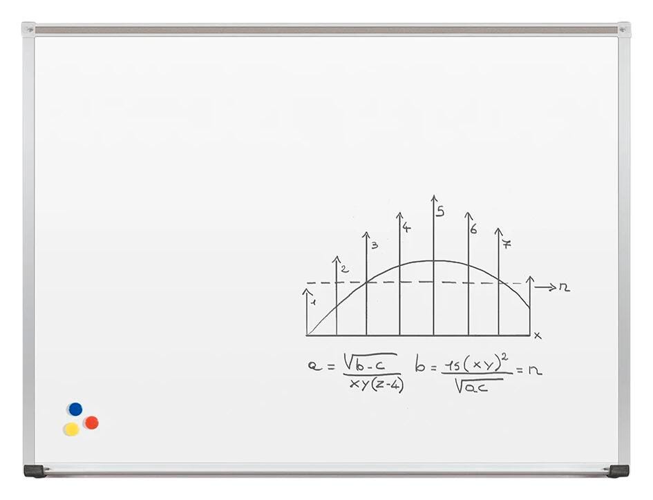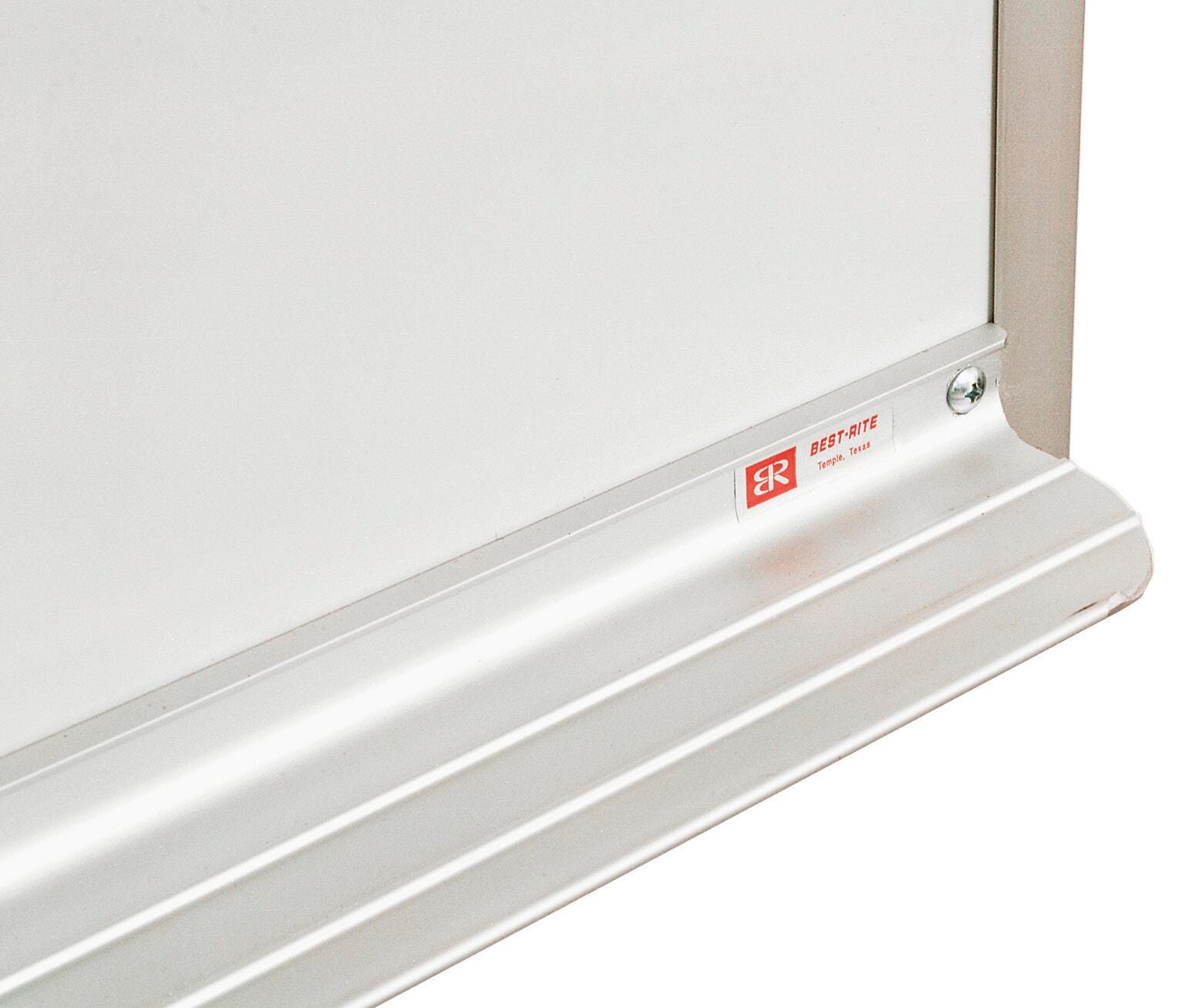 Mooreco deluxe porcelain steel markerboard measuring 3 ft x 5 ft doubles as a magnetic bulletin board and includes l-clips, rawl plugs and screws for installation. Aluminum frame markerboard constructed from mdf substrate for extra strength and moisture resistance has low-gloss magnetic steel laminated to 7/16 in thick board. Consists of full-length accessory tray with dura-safe rubber end caps. Board comes with full-length map rail having cork insert. Board featuring engineered surface produces a greater color contrast with dry erase markers. Board having reduced surface light distortion increases visibility to offer optimum eye comfort. Porcelain steel surface does not cause marker ghosting and provides superior erasability.