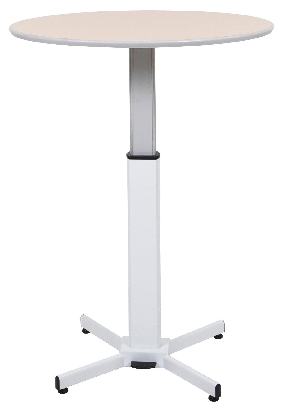 This round pedestal table is multi-functional and easily fits any work station, cafeteria, trade show environment, classroom, or social venue. This versatile table features a pneumatic lift foot pedal that quickly and smoothly adjusts the table to any height between 27-1/2 to 42 inches, allowing for both seated and standing functions for a more dynamic work experience. The contemporary tabletop, simple height adjustment, and durable steel base makes this table the ideal choice for any space, use, or venue. Measures 31-1/2 Dia x 27-1/2 to 42 H inches.