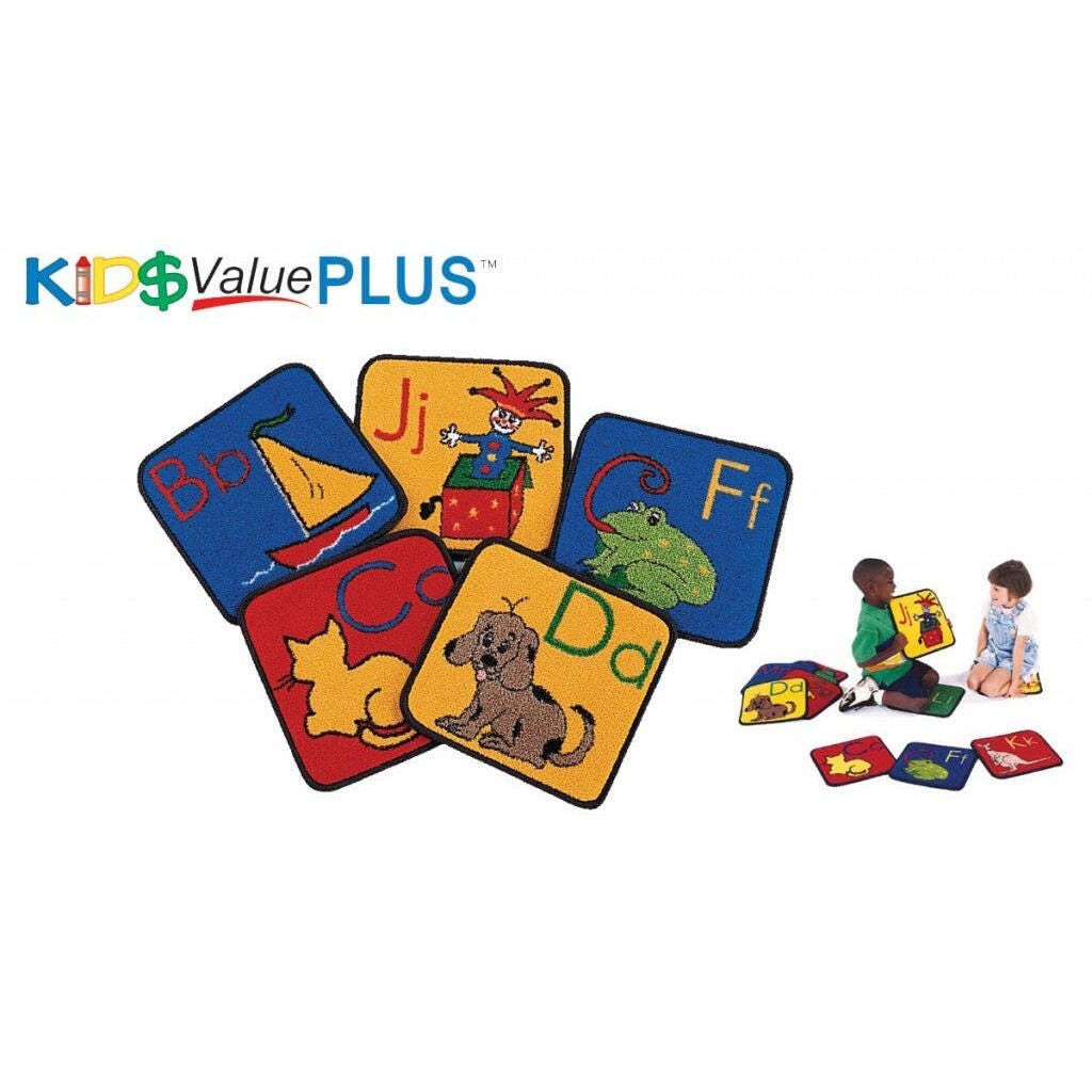 Carpets for Kids KID$Value PLUS ABC Phonics Seating Squares Carpet, 12 x 12 Inches, Set of 26, Multicolored