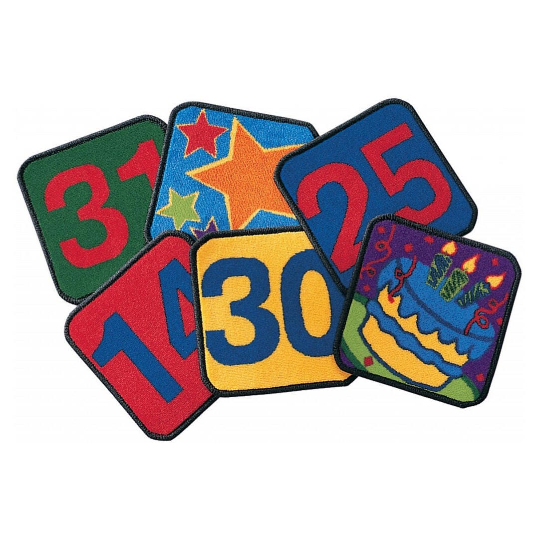 Carpets for Kids is the industry leader in high-quality, educational area carpets. Established in 1992, we are a major supplier of children’s educational carpets for daycares, schools, and homes across the country. Our amazing colors, both bright and in an earth-tone palette, and our innovative designs make Carpets for Kids the only choice for quality children’s classroom carpets. At Carpets for Kids, our goal is to provide all educators with a quality tool to enhance learning for young children. We strive to have the best designs and highest quality area carpets on the market. The Calendar Numbers Kit includes a total of 35 carpet squares: numbers 1 to 31 plus 4 special days make it possible for everyone to have a day to celebrate. Use for activities ranging from number and letter recognition to teaching days of the week and months of the year. Ideal for use with Calendar Carpets. Each square measures 12 x 12 inches.Features