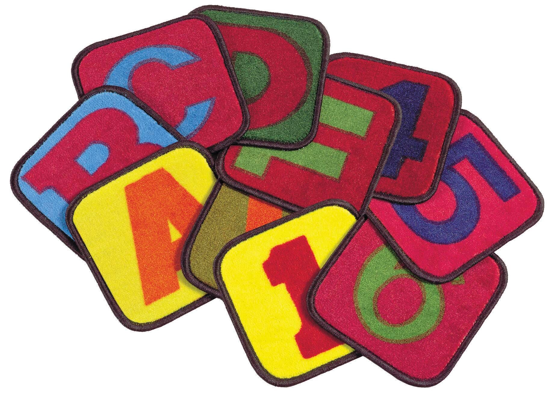 Flagship Carpets Building Blocks Carpet Squares measuring 12 x 12 inches are the ultimate flash card! They can be used alone or inches conjunction with floors that teach kids. The building block carpet is a great way to teach letter and color recognition. The squares are 100% Nylon and have a polypropylene backing.