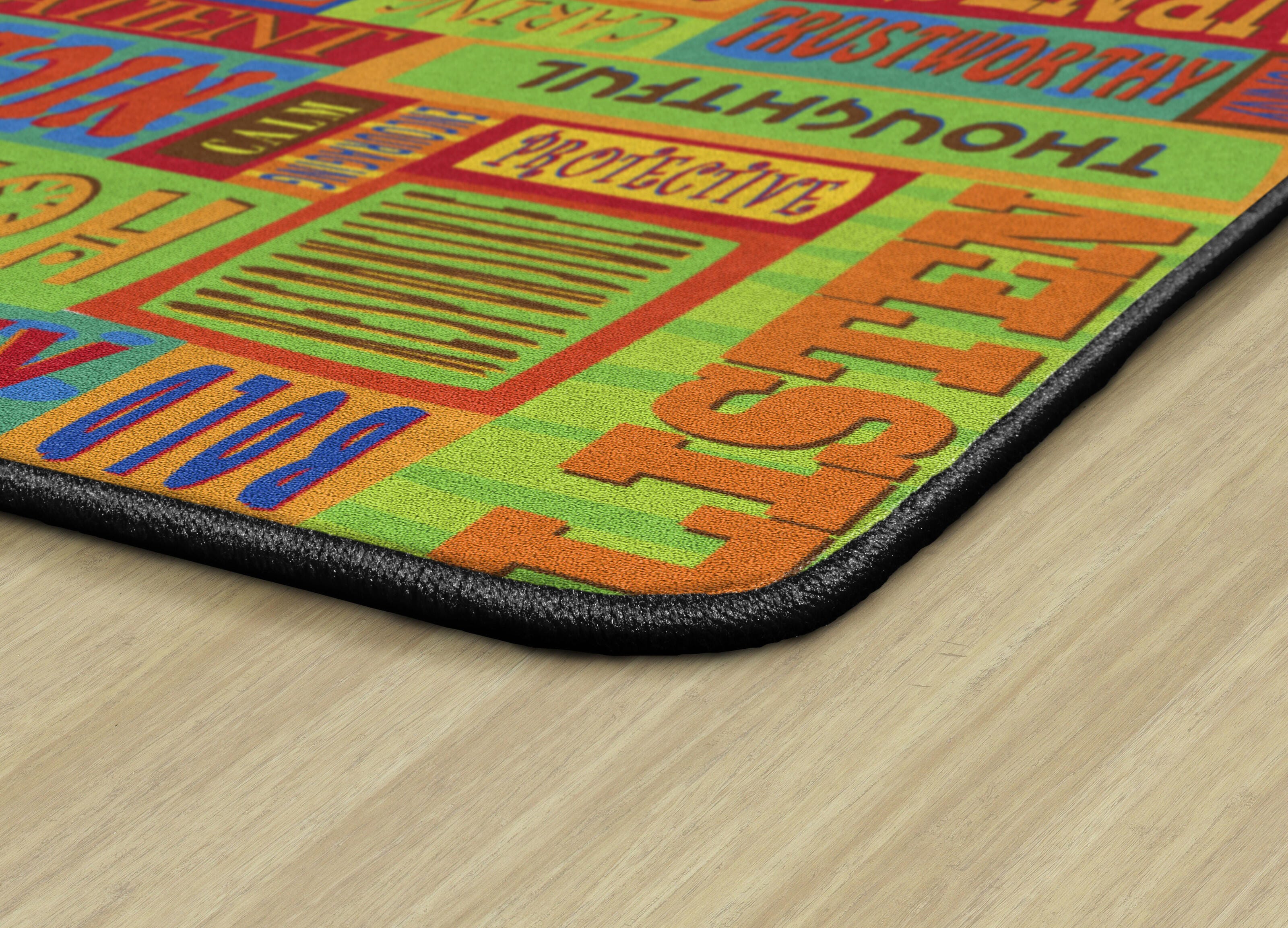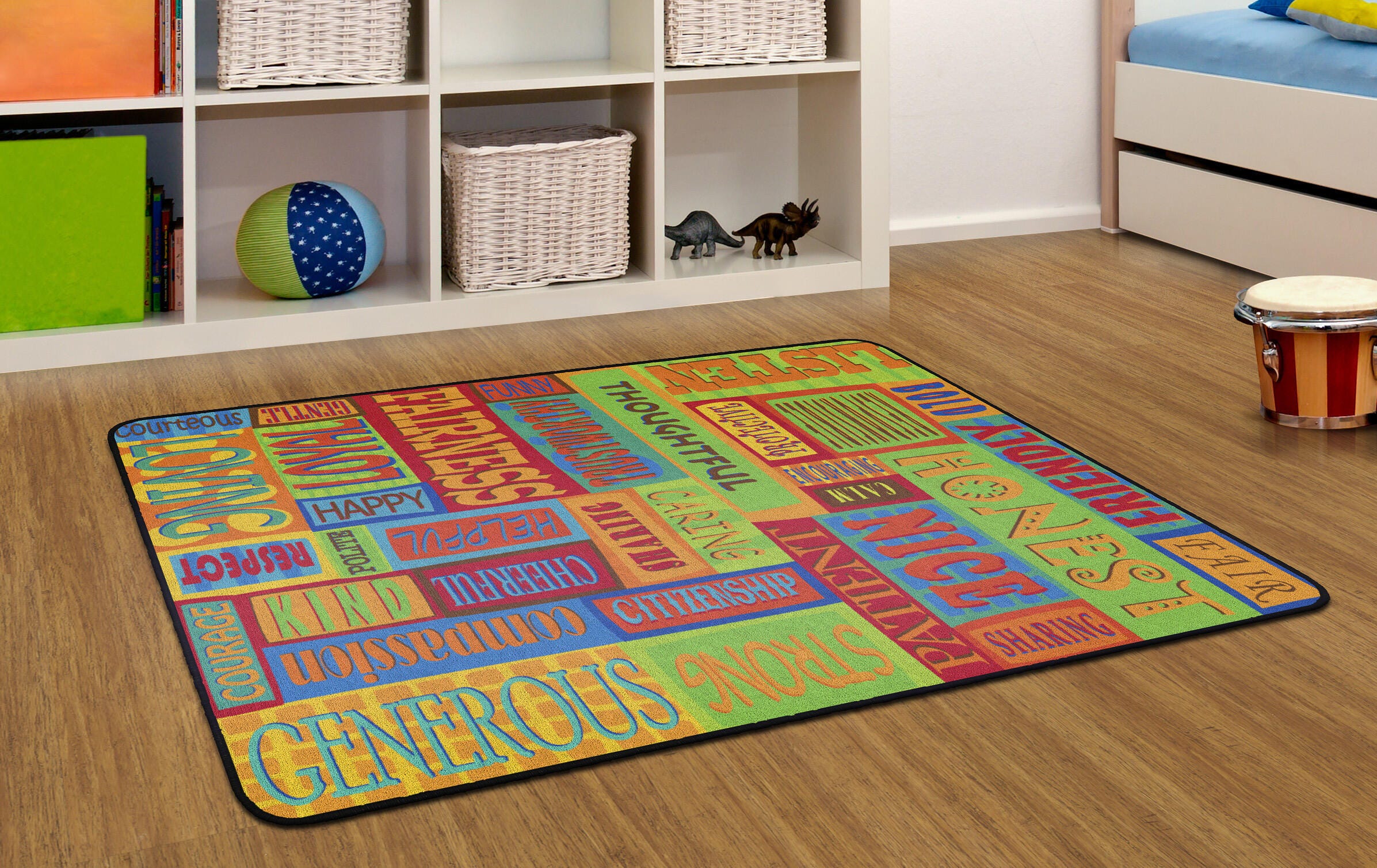 Remind children how to be a good friend with this helpful Be A Good Friend classroom carpet by Flagship Carpets. Features bold reminders on how to be a good friend to others. Available in several sizes.