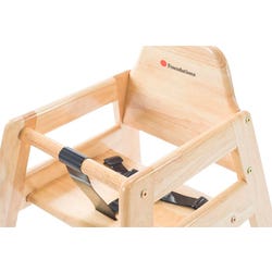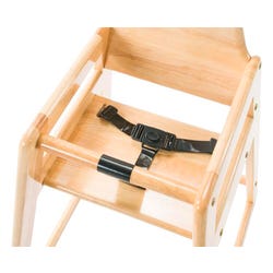 Durable solid-hardwood construction. Rounded edges for safety and finished appearance. Wide base for added stablilty. Easy-to-clean, adjustable harness for added security. Replaceable passive, crotch restraint prevents slip through. Stackable up to four high to reduce storage space. Meets or exceeds the ASTM F404 safety standard.Features