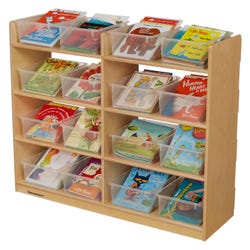 Organize and store books, supplies, and learning materials with this versatile mobile bookcase with 16 see-through bins.