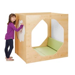 Create a retreat for students to separate themselves from the hustle and bustle of the classroom. Perfect for reading, studying, and relaxing, the Dream Cube features comfy cushions that are easy to clean and angled back rests. Double-sided Write-n-Wipe surfaces on the sides provide a space for students to jot down ideas, learning concepts, and work out problems. Large cutouts in the sides and the open top give teacher visibility while still creating a private area for students. Side openings are 37 inches in diameter. Cloud Write-n-Wipe surfaces are 28-1/2 W x 24 H inches. Inside Write-n-Wipe panels are 33 W x 29-1/2 H inches.