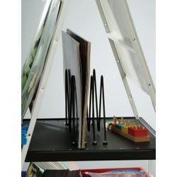 The award-winning Copernicus Royal Reading / Writing Center is an essential teaching tool for all primary classrooms. The front magnetic dry-erase surface measures 24 W x 34 H inches. The rear double-sided dry-erase board measures 24 W x 32 H inches and is removable and lined on one side. Frame measures 33 W x 27 D x 57 H inches. Tubs measure 12-1/2 W x 15-3/4 D x 6 H inches. Lifetime frame and tub warranty.Features