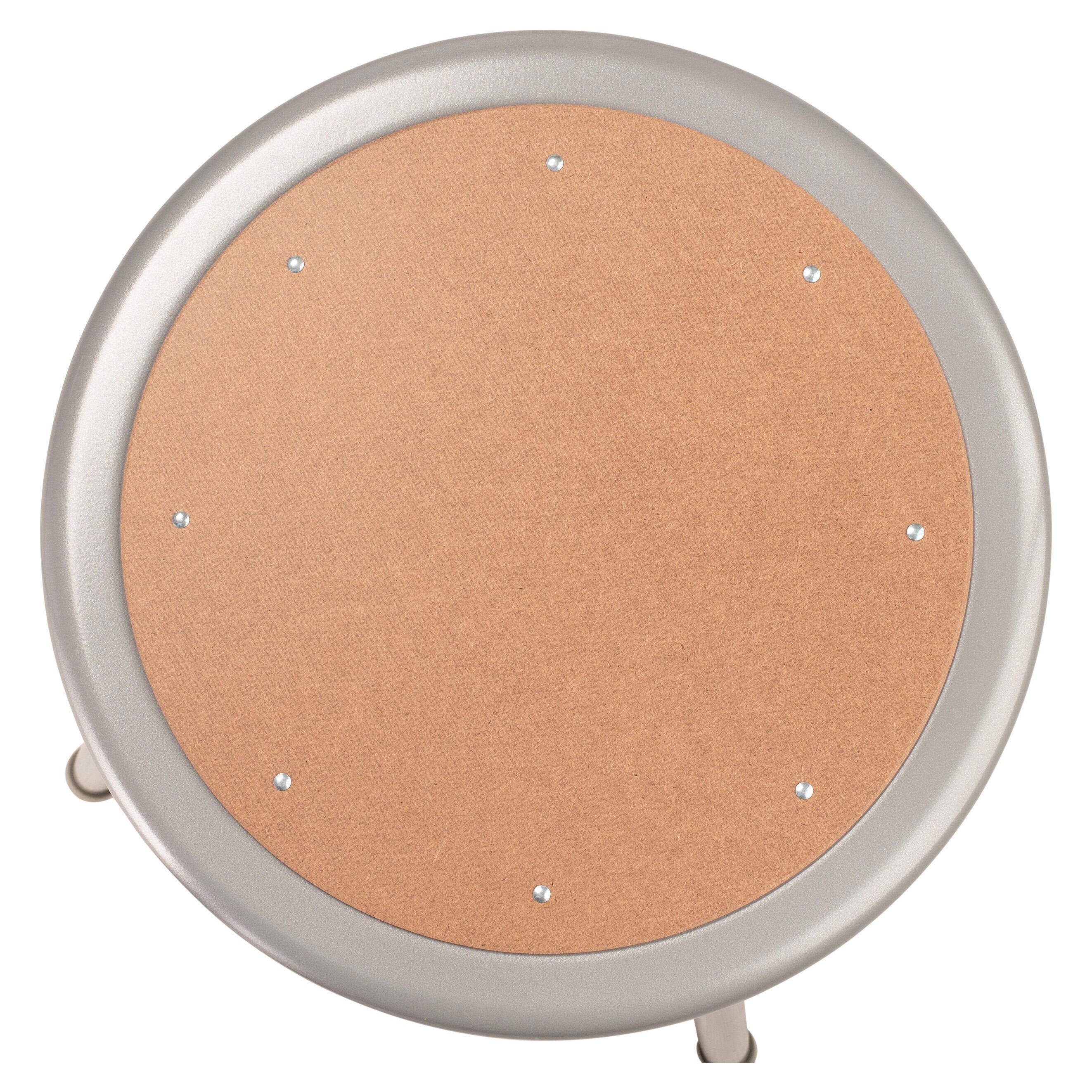 National Public Seating Gray Enamel Quality Steel Adjustable Height Stool is made to support you in heavy-duty, high-traffic settings, featuring a hardboard inset riveted onto a 20-gauge steel seat pan measuring 14 inches in diameter. Each 18-gauge, 7/8 inch diameter leg of the stool is welded to a 5/8 inch foot ring. Measures 18 W x 18 D, with an adjustable height between 25 to 33 H inches.