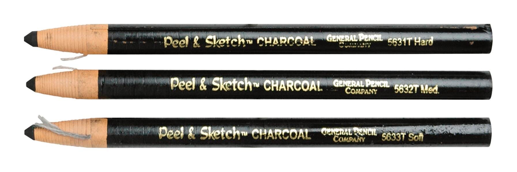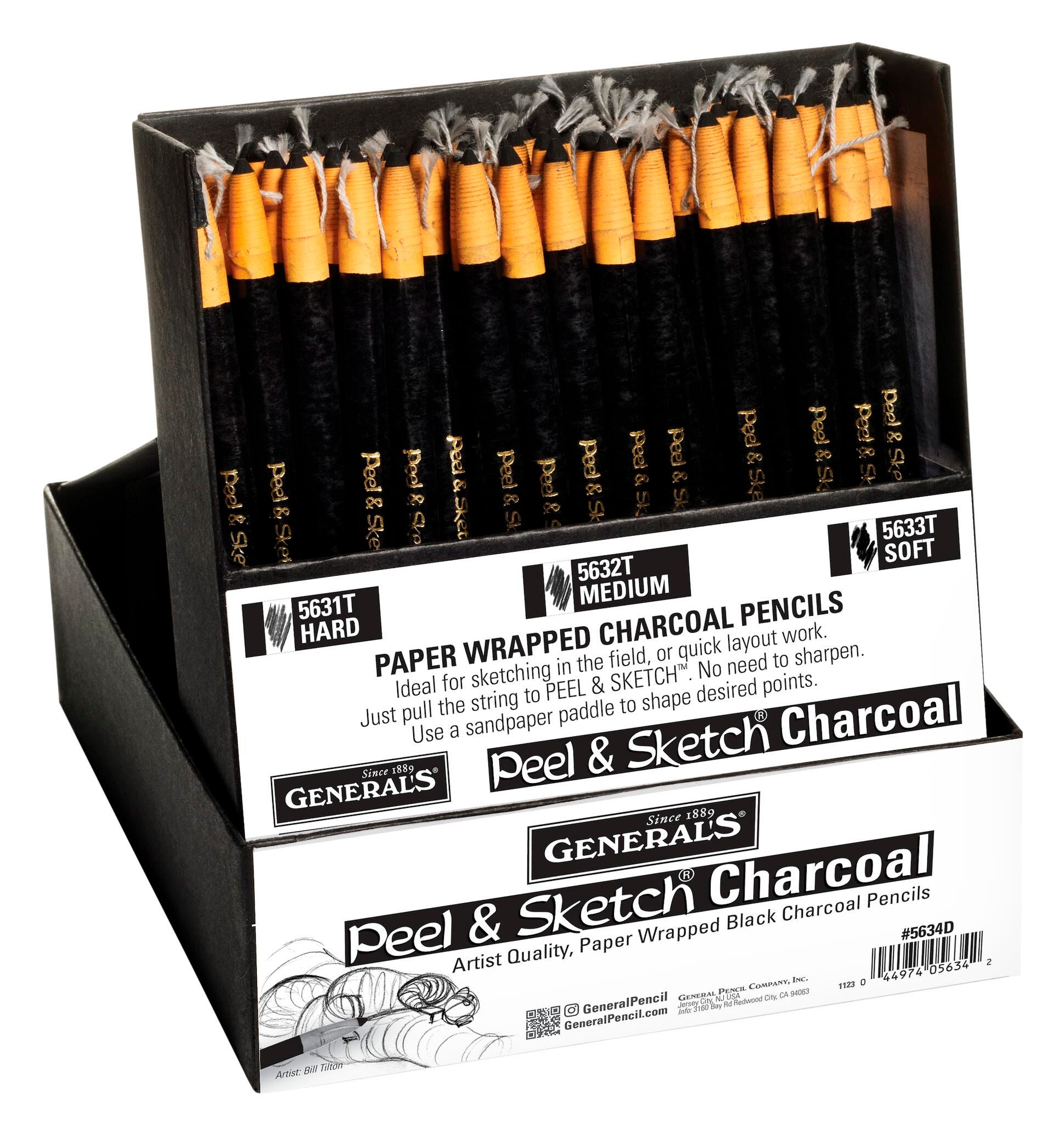 General's Peel and Sketch Smooth Charcoal Pencils, Assorted Hardness, Black, Set of 72