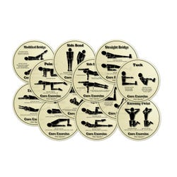HotSpots 8-1/2 inches Core Exercise Spots feature instructions for exercises such as crunches, side bends, back extensions and more. All exercises focus on strengthening the core, and spots allow students to spend more time on proper form and function, rather than watching demonstrations. Heavy-duty spots contain bright graphics that are printed on an anti-slip, tear-resistant rubber material. Set includes 1 Activity Guide and 12 HotSpots.Features