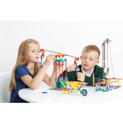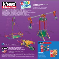 K'NEX STEM Explorations Levers and Pulleys Set contains 139 pieces that students can use to build three replicas of real-world simple machines. K'NEX kits don't just keep kids occupied, they also foster their imaginations in creating designs. Set is designed for students grades 3 to 5 (ages 8 and up). Using the downloadable activities, teachers can guide children in learning about lever classes, pulley systems, resistance, effort, and mechanical advantage. It makes a great learning tool for students, as it helps develop their cognitive skills and critical thinking. Guides are aligned to national standards, including ITEEA, NSES, NCTM, NGSS and Common Core. Ages 8 and up.Features