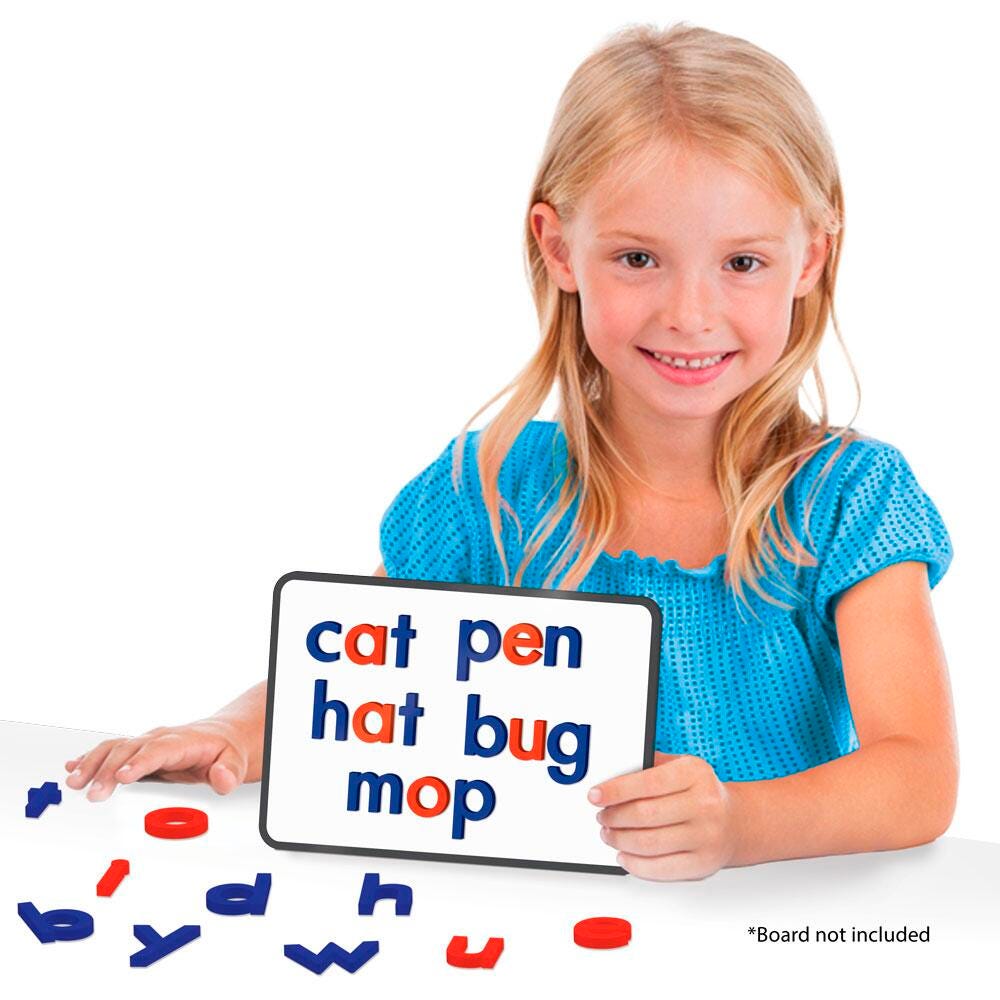 Description Rainbow Letters are a set of magnetic letters in a box. Includes 2 sets of the alphabet and an extra 2 sets of vowels. Appropriate for ages 4 years and up.Features Vowels are color-coded in red Consonants are color-coded in blue Perfect for building CVC words or completing alphabet arc activities