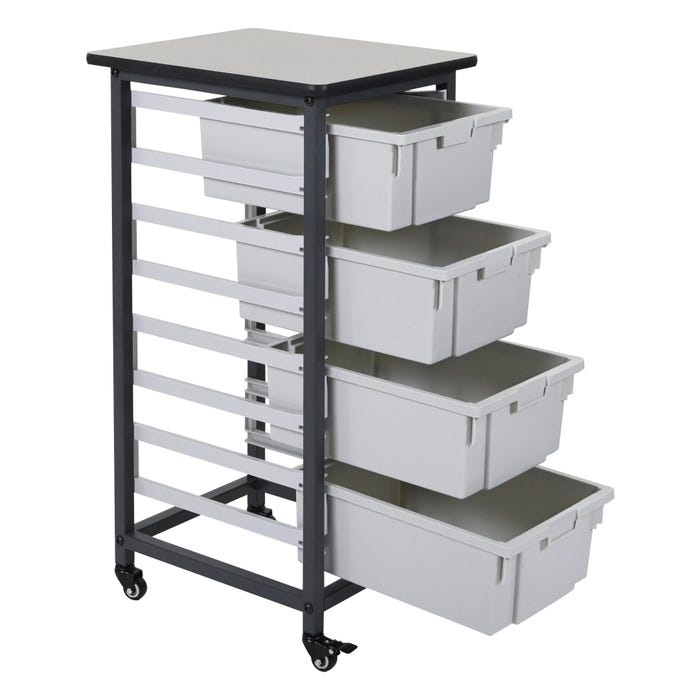Luxor Mobile Bin Storage Unit, Single Row, 4 Large Gray Bins