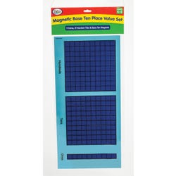 Model essential base ten and place value concepts for the whole class or for small groups with this clever tool. Works on any magnetic surface and consists of frame, base ten pieces, 21 number labels, and extensive teaching notes related to math standards. Frame measures 18 inches wide by 9 inches high. Base ten cubes are 5/8 inches. Includes 20 unit cubes, 20 ten rods, and 1 hundred flat. This is a large magnetic version of our Base Ten Place Value Frame. Grade K to 2.