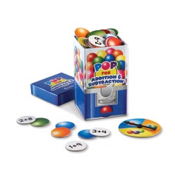 Learning Resources provides a game set that allows children to practice basic facts along with greater than and less than and boosts critical thinking. Includes 90 math fact cards, 10 POP cards, spinner and guide. Theme game measuring 3 L x 3 W x 6 H inches is suitable for 2 to 4 players.Features