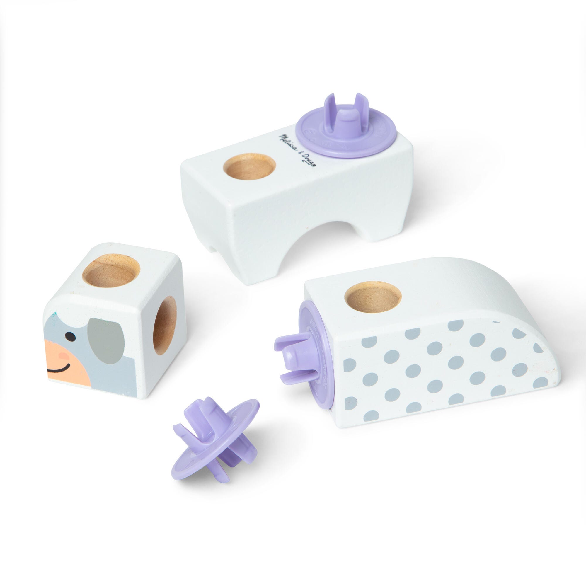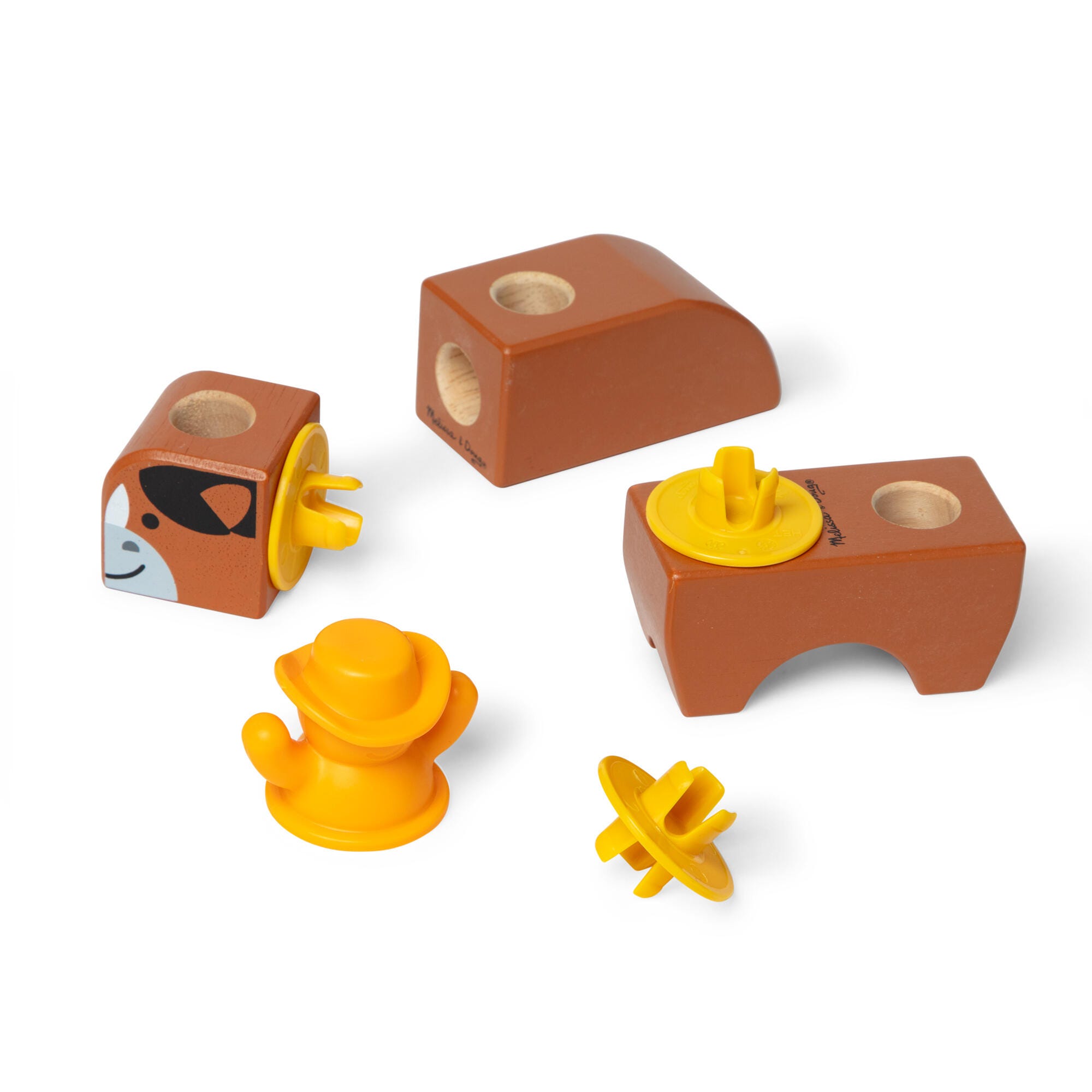 - Easy-to-grasp smooth, colorful wooden blocks fit together in a snap with large connectors that even little hands can push in and pull out