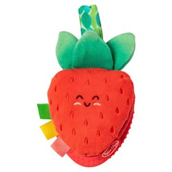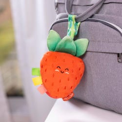 This plush strawberry friend invites infants to explore sensory add-ons such as mirrors and crinkle leaves, while lending a plush body to hug and grip. Perfect for on-the-go engagement, this Strawberry can clip to your stroller or diaper bag with ease.