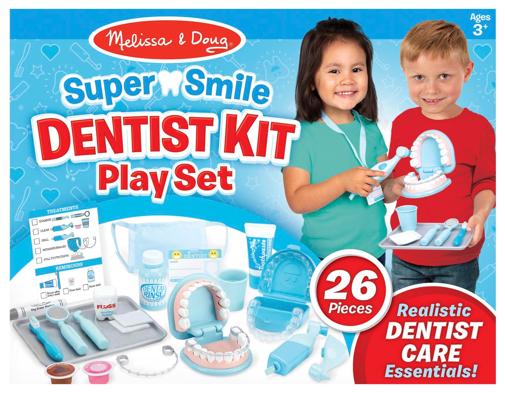 Smile, the dentist will see you now! This 26-piece dental care play set by Melissa & Doug features an oversized set of pretend teeth so young dentists-in-training can give cleanings, treat cavities, and even fit retainers and braces!