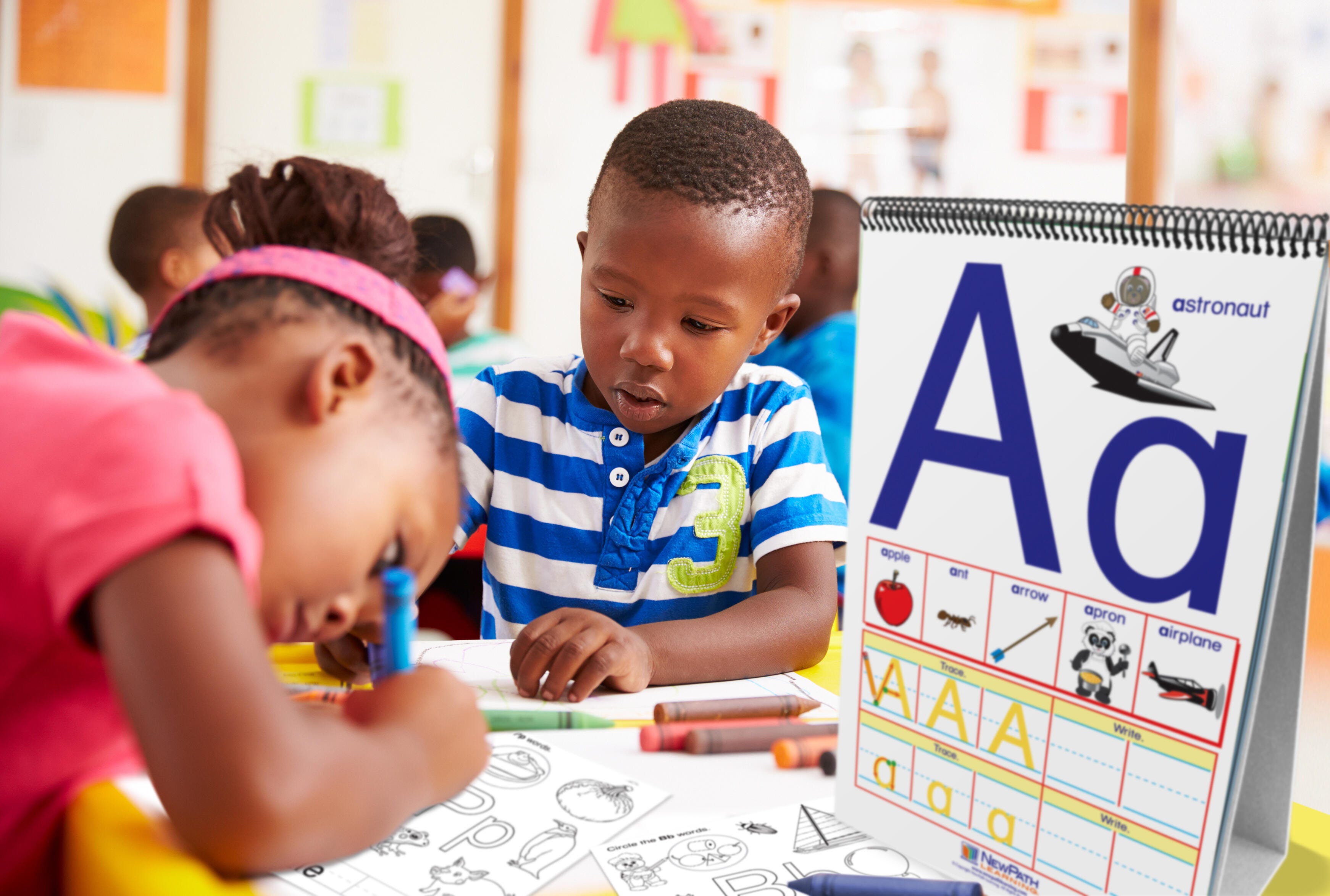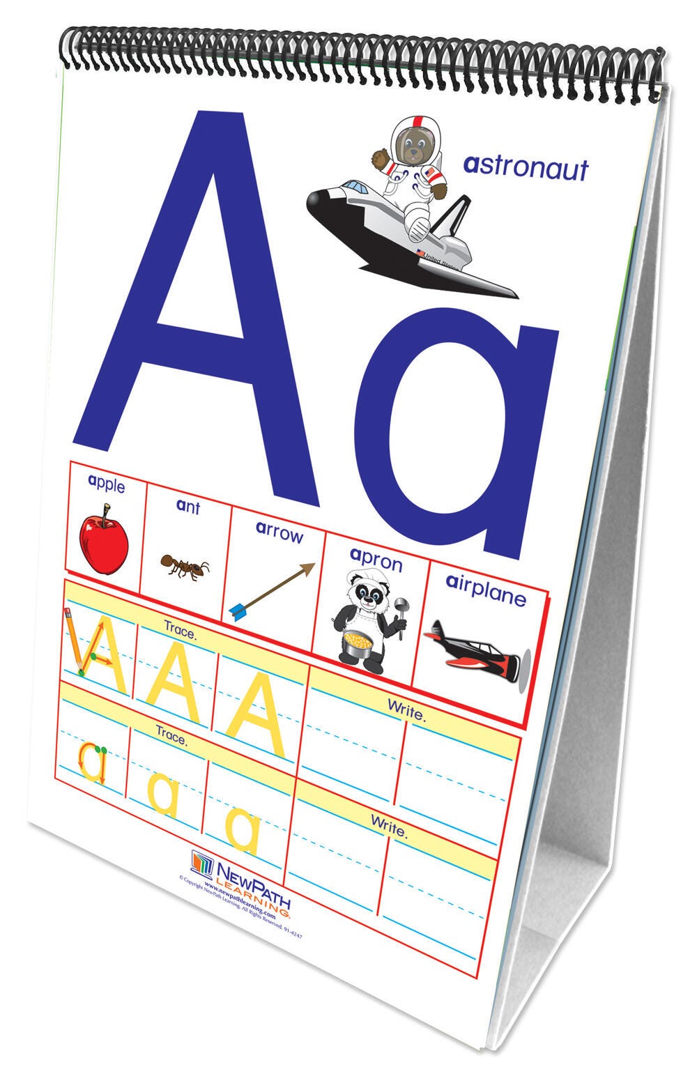 NewPath Learning The Alphabet Learning Flip Chart Set is designed for grades K to 1 and incorporates 13 double-sided charts with each page having different letters of the alphabet. Set of 13