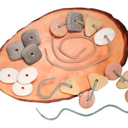 Children love handling stones and this set of 16 tactile threading pebbles will invite sensory play. Develop early math and fine motor skills as children sort and sequence the stones by shape, color and texture. Each set includes 16 threading pebbles in four different shapes, colors and textures plus two laces. Pebbles measure 1-1/2 inches.