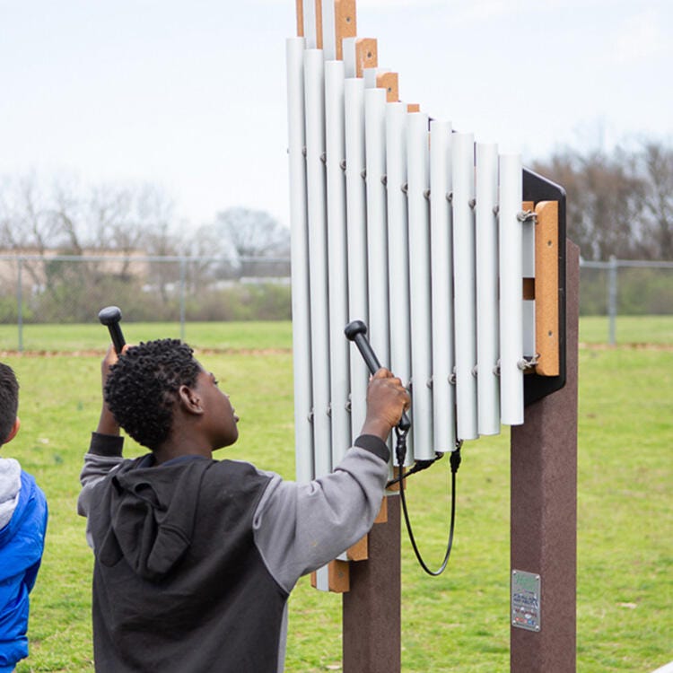 Anyone, any age, any ability level can play this outdoor musical instrument and sound great! Upgrade your playground with a Freenotes Harmony Park Griffin Xylophone.