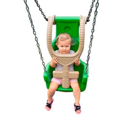 Swing safe and secure knowing this inclusive swing is built tough yet comfortable with young children in mind. This Inclusive Swing Seat Package by UltraPlay is built ADA-Compliant to fully support children ages 2 to 5 years old. It is one of the only full-support seats that is age and size-specific while offering therapeutic benefits such as movement and perceptual skills. These playground swings are made from durable roto-molded plastic seat and yoke for a finger-friendly safety while swinging, with all stainless steel hardware for long-lasting hold. This Swing Seat Package does not include the swing bay. When pairing with a swing bay, please ensure it is rated for the same age range as the seat you've purchased. This Swing Seat Package is available in a nature-inspired Natural theme.Features
