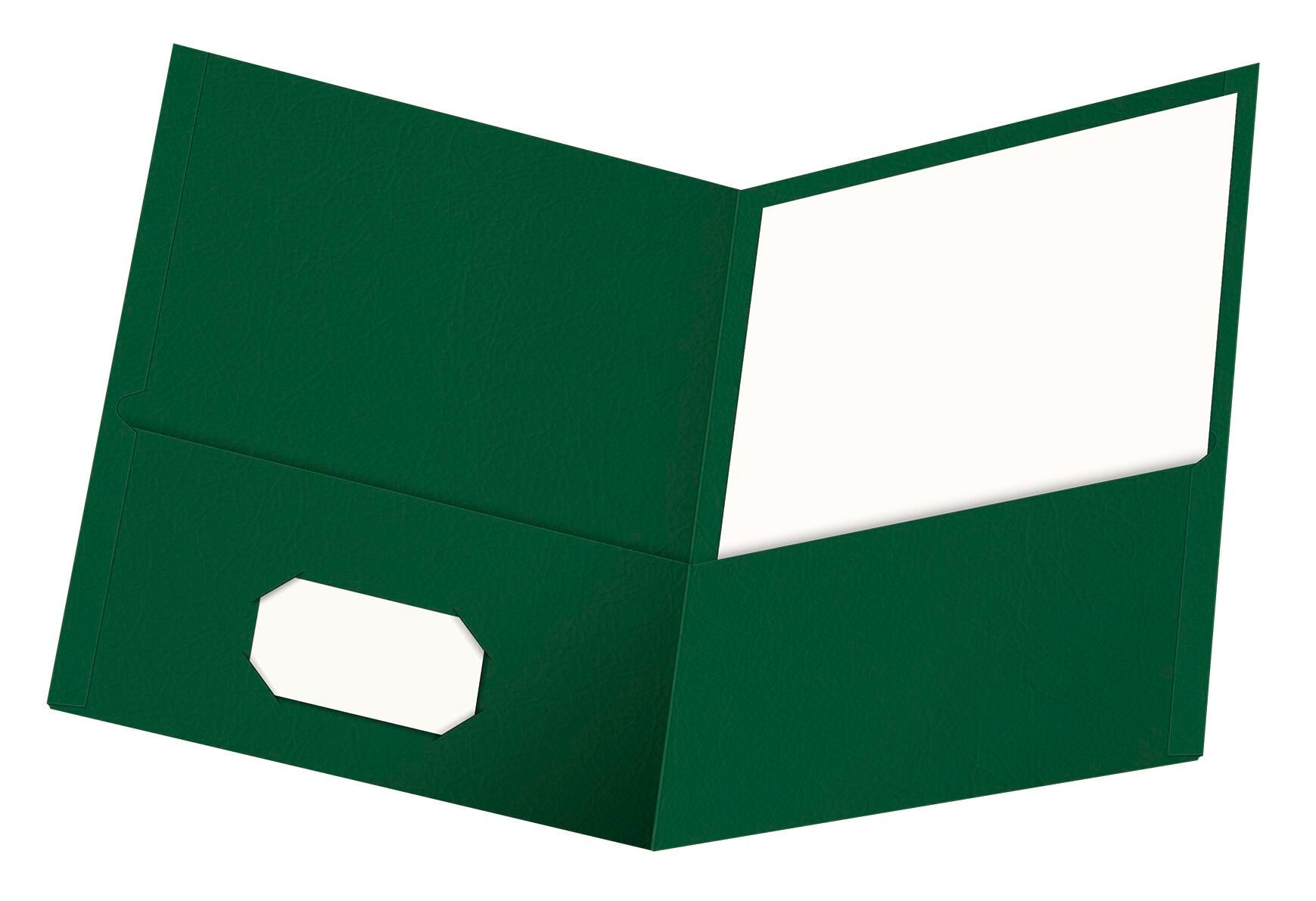 Oxford® Two Pocket Folders provide easy color-coded organization anywhere. The folders are constructed of durable and subtly textured paper that reduces marks and smudges so they stay looking new longer. Each folder can hold up to 100 sheets of letter-size paper, 50 per pocket, giving you high-capacity storage that keeps your papers secure. These 2 pocket folders also have a die-cut business card holder, allowing them to be easily customized or labeled. Pocket folders are handy and versatile organizational tools, great for schools, offices, and homes. This pack contains 25 hunter green folders.Features