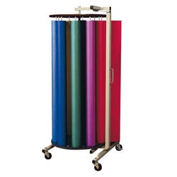 This paper rack from Pacon is constructed of sturdy, gray powder-coated steel and has four heavy-duty, swiveling rubber-wheeled casters, two of which lock, making it sturdy and easy to move even when fully loaded. The safe cutter bar has no sharp edges and can accommodate ArtKraft rolls that measure 48 inches x 200 feet. This rack is easy to assemble and measures 24 x 28 x 58 inches. Rolls of paper not included.Features