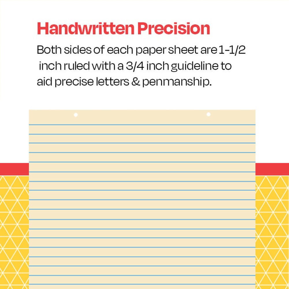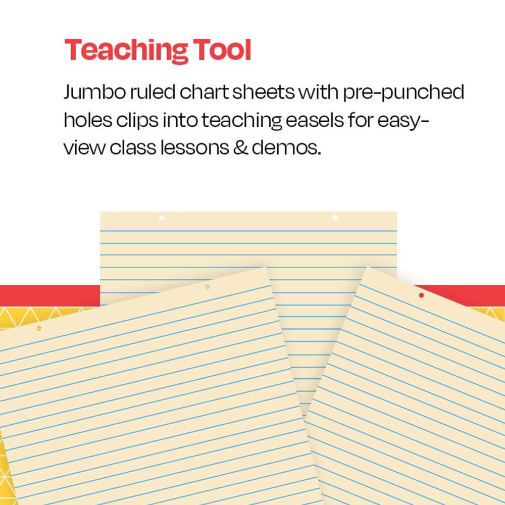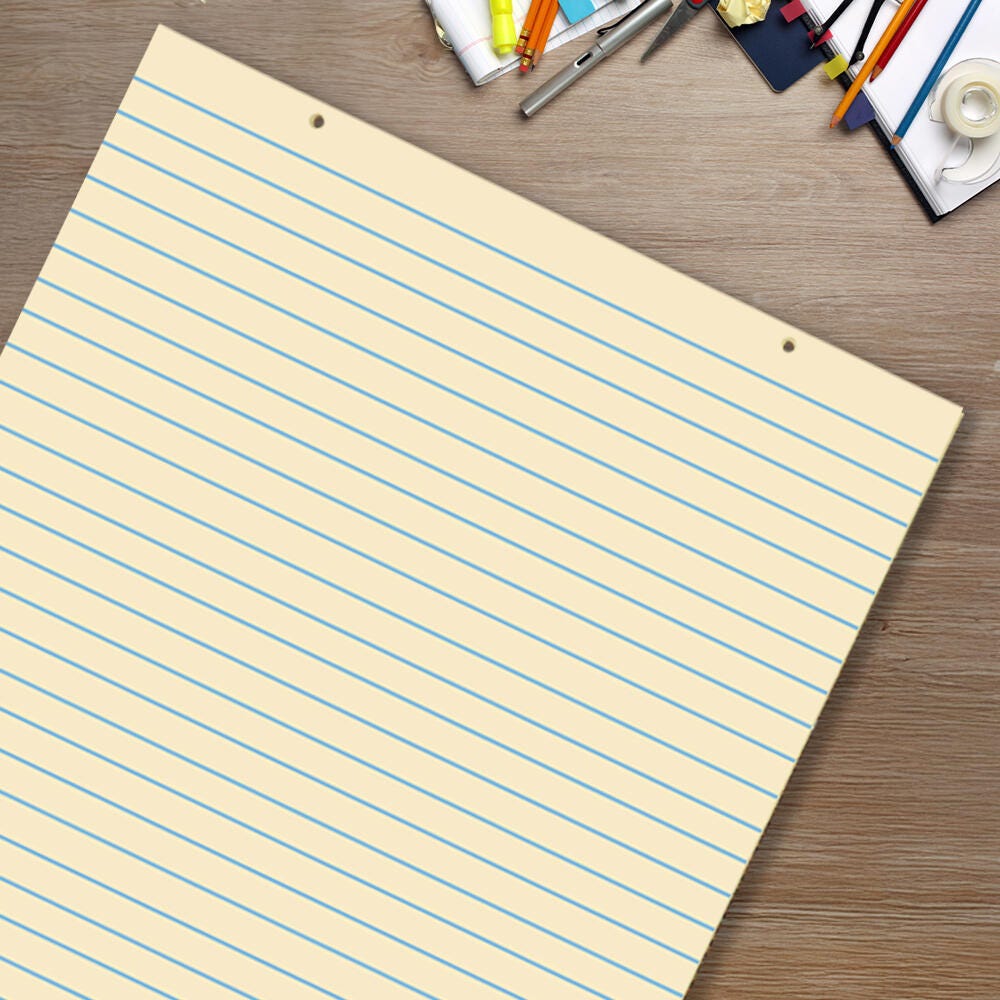 Features Writing paper is ruled on both sides for double the workspace to practice handwriting and sentence structures, compute equations, and more Chart paper features two neat holes punched at the top making it easy to hang just where you need it Buff color of manila chart paper and space between ruled lines makes content simple to read for young elementary students Thick and jumbo sized chart paper is a great resource for making anchor charts and lesson plans on spelling, alphabet, and grammar lessons Includes: 36 Double-Sided Sheets of Writing Paper