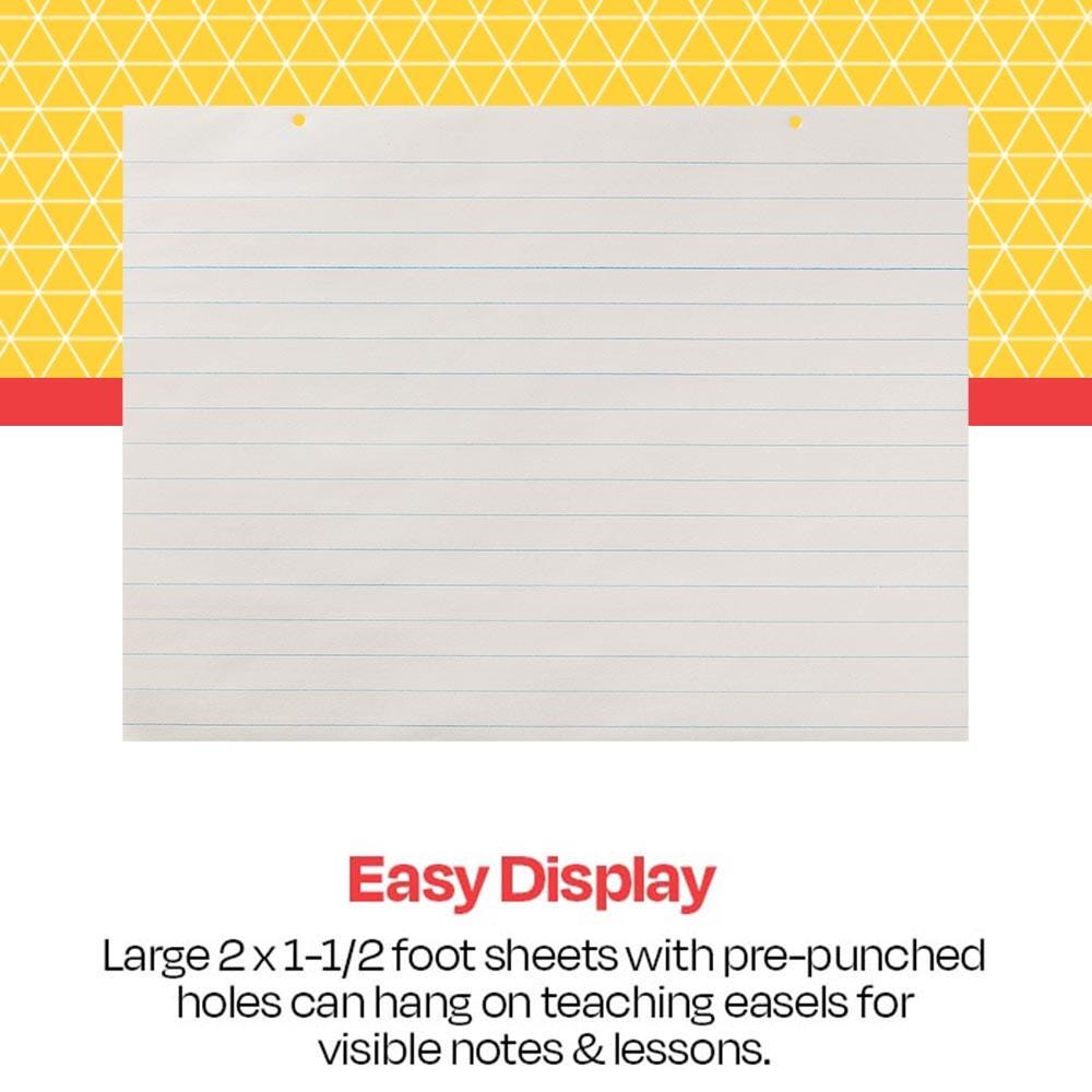 Features Perfect for spelling, alphabet and grammar lessons Conveniently ruled to help with penmanship Recommended for grades Kindergarten to 3rd Holes punched at the top for easy application to teaching easels Includes: One Pad with 100 Sheets of Paper
