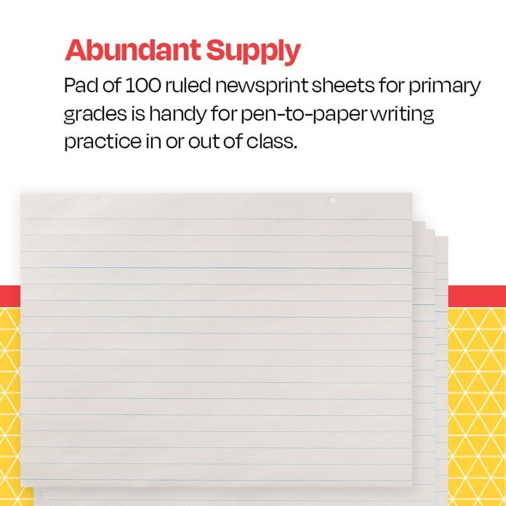 Description Designed with primary grades in mind, simplify writing with newsprint pads from School Smart! These chart pads are bound on top and punched with two holes for easy hanging whether on the wall or bulletin board. The paper is lined with a 1-inch ruling, horizontally, on both sides. The pad includes 100 sheets of paper with a paper weight of 15 lb.