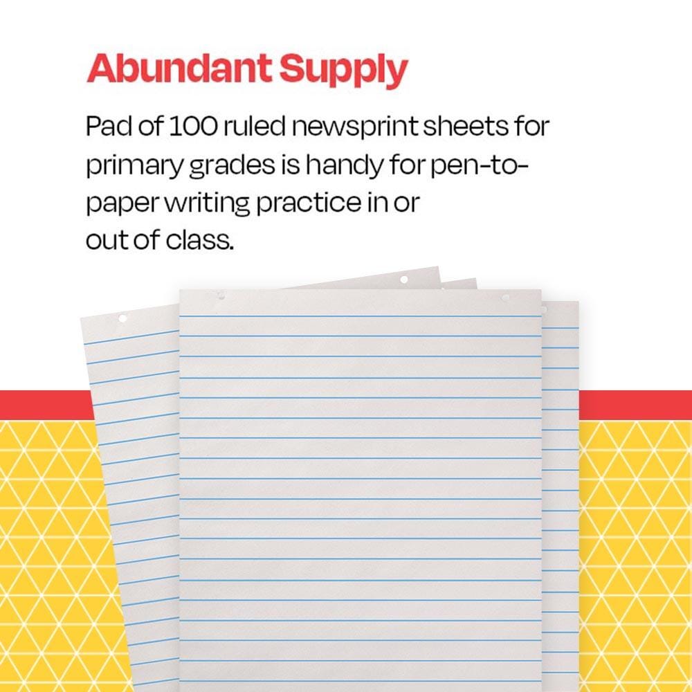 Description Designed with primary grades in mind, simplify writing with newsprint pads from School Smart! These chart pads are bound on top and punched with two holes to allow for easy hanging on bulletin board tacks, nails, or teacher easels. The paper, with a 15 lb. weight basis, is 1-inch ruled the short way on both sides. This newsprint paper is great for doing student presentations, handwriting practice, and showcasing big notes at the front of the class. Best for Grades K to 3. Each sheet measures 18 x 24 inches.