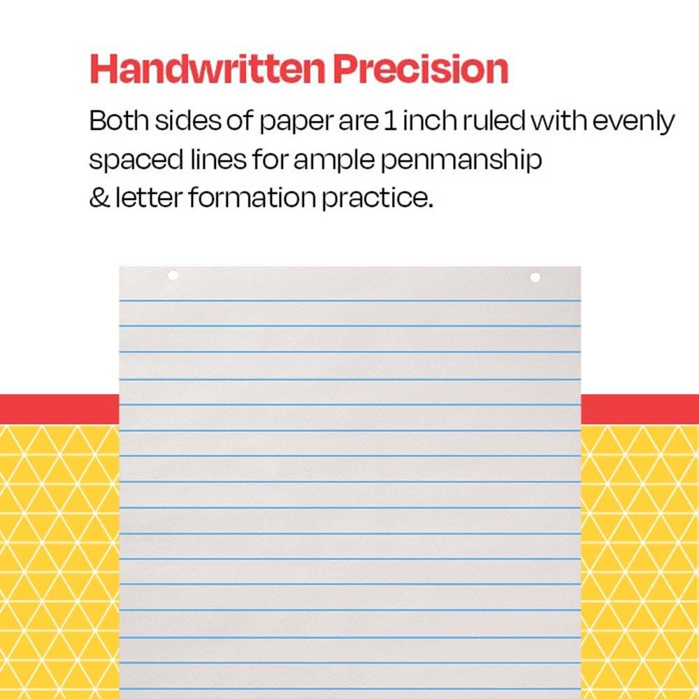Features Newsprint paper is perfect size and alignment for spelling, alphabet, and grammar lessons Rule lined paper for kids is a quick and easy way to study and practice proper penmanship Two small holes punched at top of story picture paper allows you to easily attach sheets to teaching easel or bulletin board One hundred sheets of storybook paper is a smart and economical choice for classroom, childcare center, therapy or tutor lessons, and more Includes: One Pad with 100 Sheets of Storybook Paper