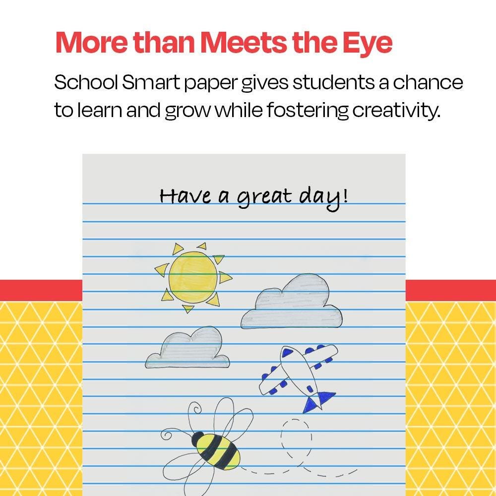 Description School Smart White Sulphite Practice Composition Paper measuring 7 x 8-1/2 inches is perfect for writing practice. 3/8 inch ruled short way paper of 16 lb basis weight is sold as 500 sheets per pack.