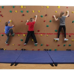 This Traverse Wall Kit is an economical and easy way to bring indoor rock climbing to your facility. Climbers move horizontally, rather than vertically, and do not require harnesses, ropes or climbing partners. Each 4 x 8 foot section includes 20 child-friendly hand holds and 50 pre-drilled holes for t-nut placement. Included t-nuts must be placed on panels prior to installing the wall and hand holds. Assembly and installation instructions included.