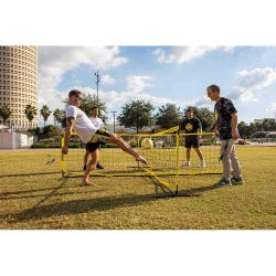 Combine four square and soccer into one fun game! Great for practicing and finessing your shots or play a game using the traditional CROSSNET rules. Set up within minutes on a tennis court, black top or indoors. Set includes poles, stakes, boundaries, and net in a convenient travel bag.Features
