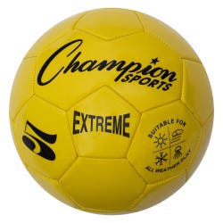 Great for recreational and competitive league games and practices in any kind of weather conditions, the Champion Sports Extreme Soccer Ball is designed with a soft-touch composite TPU cover for a soft feel without compromising the ball's weight and striking power. The butyl bladder offers exceptional air retention, and the patented machine-stitch technology of the panels offers added durability. This yellow size 5 soccer ball is recommended for athletes ages 12 and up.Features