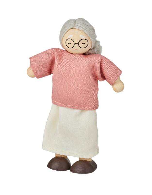 PlanToys Wood Grandmother Doll, Fair Skin Tone