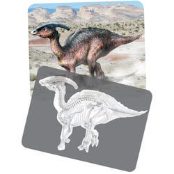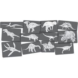 The Roylco Discover Dinosaurs Picture Cards and X-ray Kit allows students to make observations about dinosaurs by showing them images of both the inside and outside. Students simply lay the twelve "x-rays" over the matching twelve color pictures to get a view of where the bone structures resided inside the creatures.Features