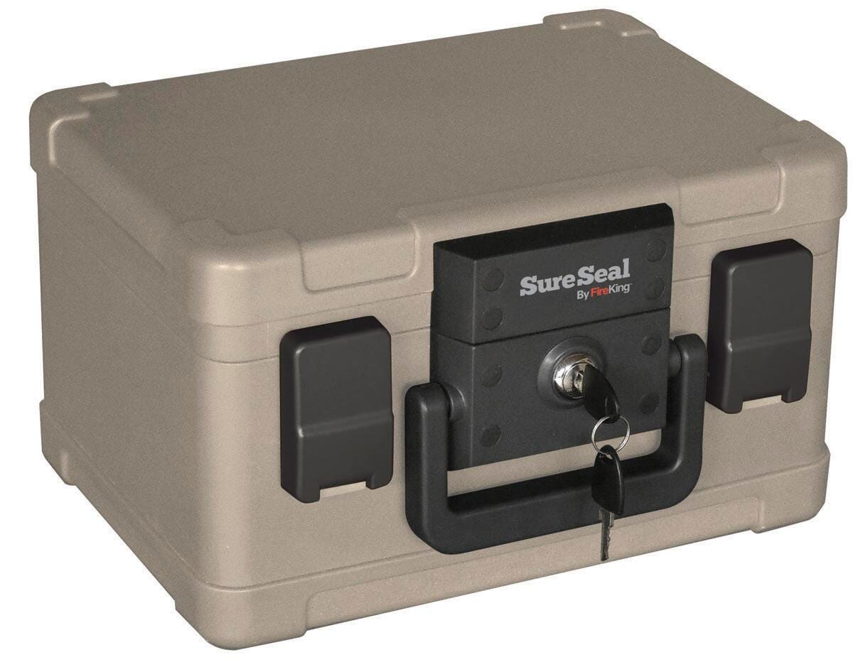 FireKing Sure Seal Waterproof Fire Chest, 12-3/16 x 9-13/16 x 7-5/16 Inches, 0.15 cu-ft, Taupe