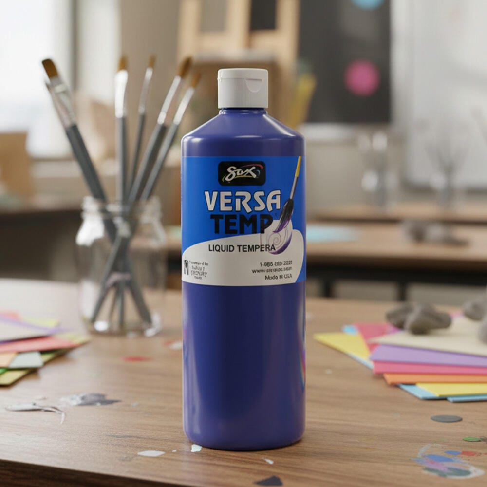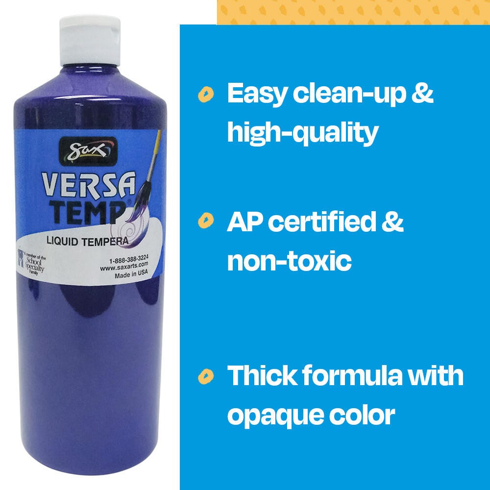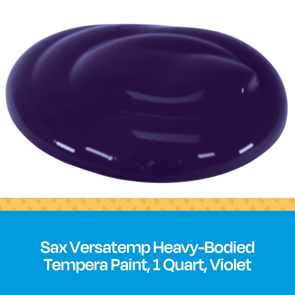 Description Sax Versatemp heavy-bodied tempera paint in violet produces bold, vibrant results. Foster creativity with a paint that resists cracking and chipping. The convenient quart bottle is easy to pour and store, and is perfect for sharing in the classroom. Complete art projects, posters, and signs that stand out with one shade or craft new hues by mixing. The heavy formula is easy to apply and mix.