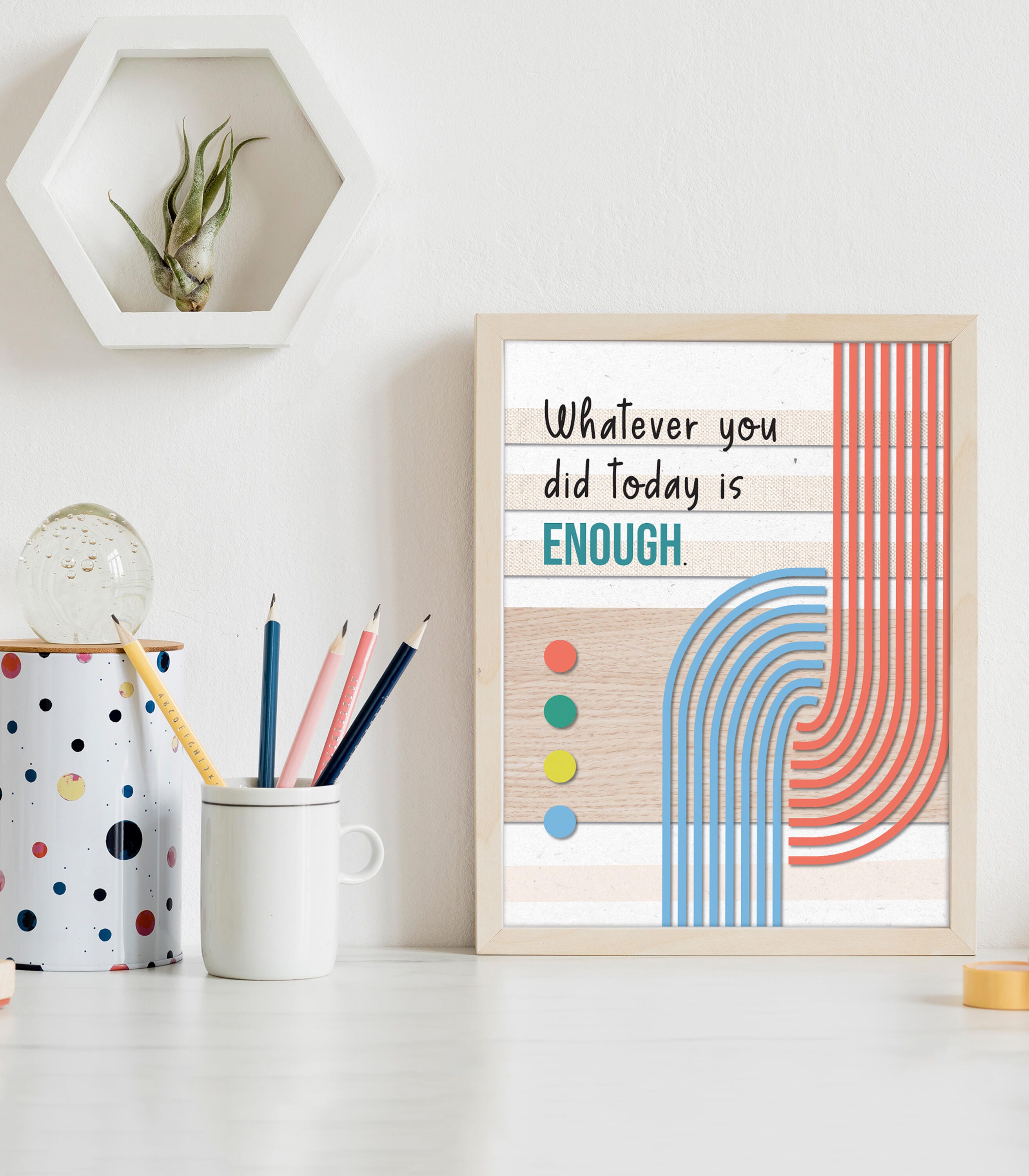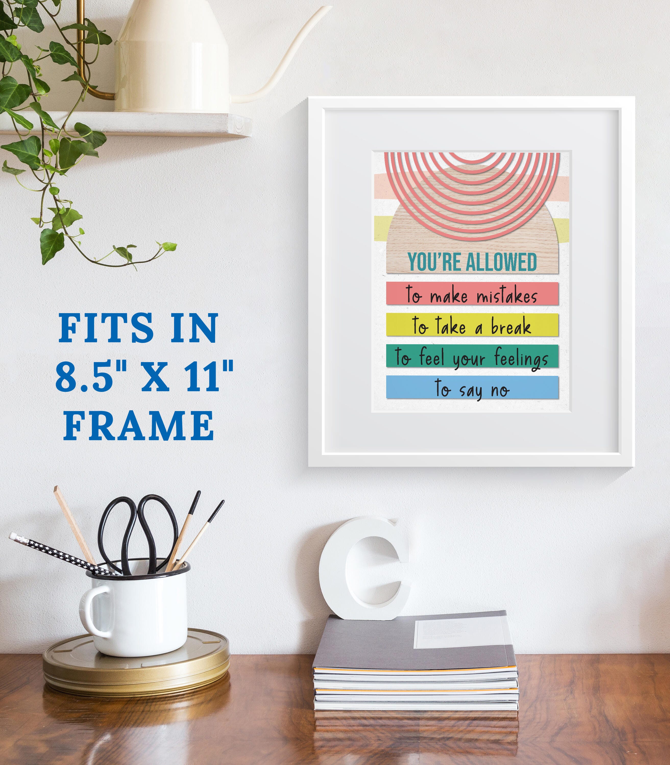 The inspirational wall art set includes 12 motivational posters with inspirational quotes and a variety of beautiful, organic designs to create stylish, modern décor with touches of natural textures and patterns. Each motivational poster features positive sayings such as “You are worth it”, “Become what inspires you”, and ‘Make time for what make makes you happy” to encourage a growth mindset in and out of the classroom. Measuring 8-1/2 x 11 inches, these stylish, printable posters are perfect for framed wall art, office décor, and desk décor, or for decorating bulletin board, cork board, and other visual displays in your classroom, home, or dorm room.Features