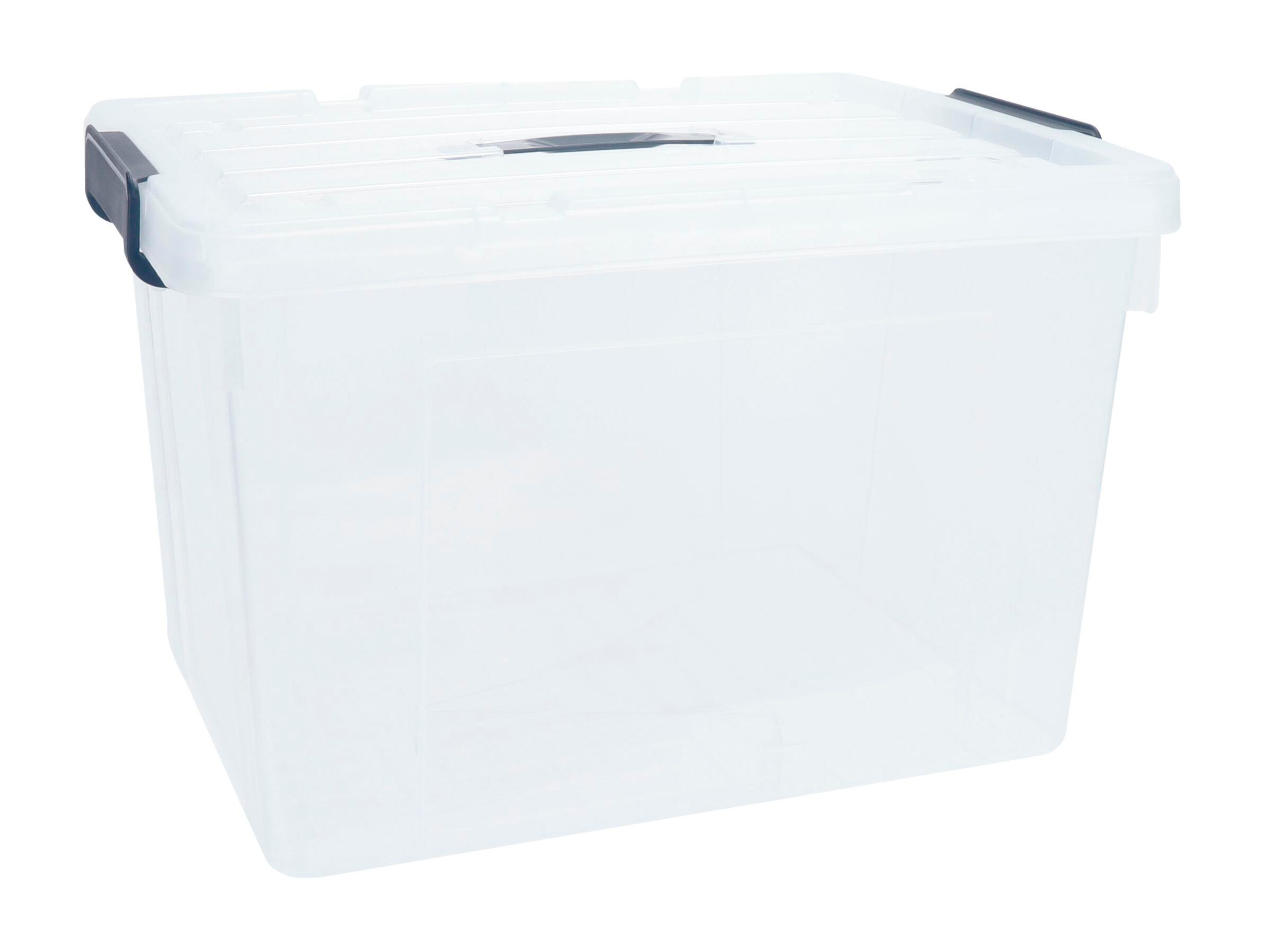The SpaceXpert organizer storages bins come equipped with side clasps to secure top cover lids. Comfortable innovative latches for easy handling. The see through base allows for easy identification of all your office or school stuff. Designed for heavy duty and able to withstand weight. These storage bins are also modular stackable for maximum efficiency. The outside dimensions of the bin are 20.1"Lx15.1"Wx12.6"H and the inside dimensions measure at 17.9"Lx13.6"Wx11.8"H.