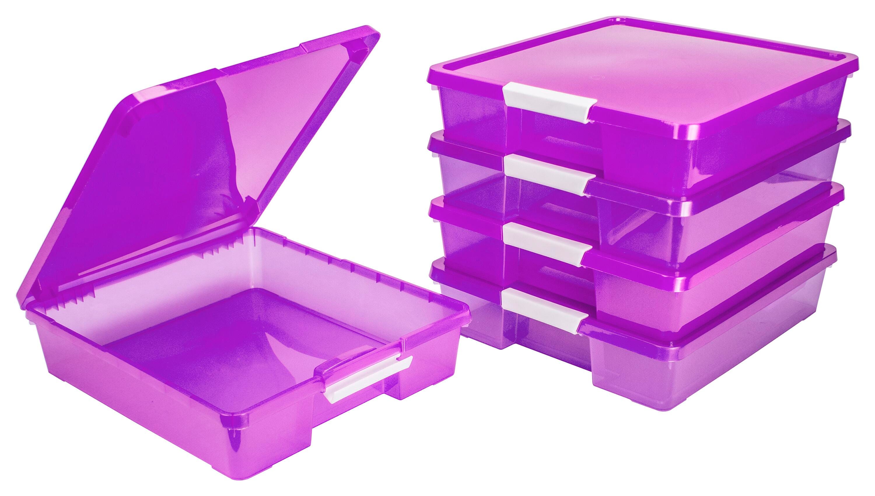 Storex Classroom Project Box, 13-1/4 x 15-1/4 x 3-1/4 Inches, Transparent Purple, Pack of 5