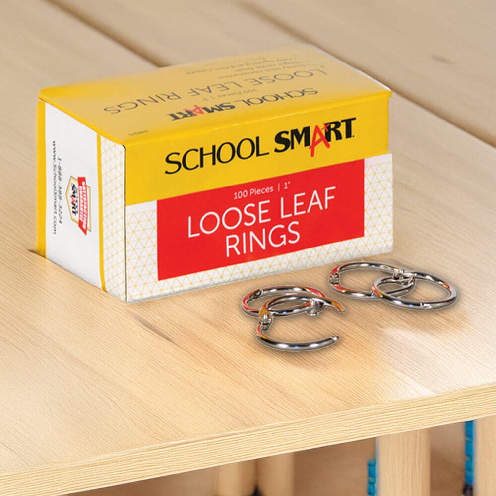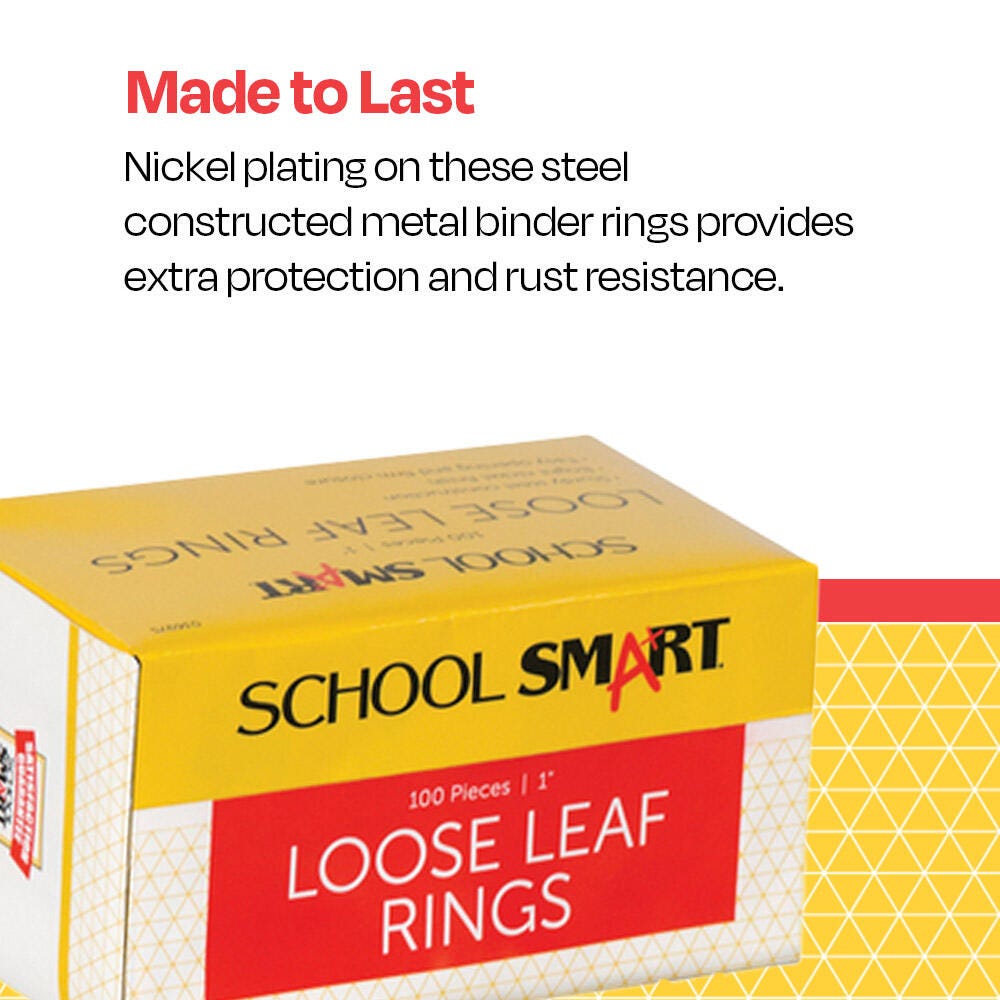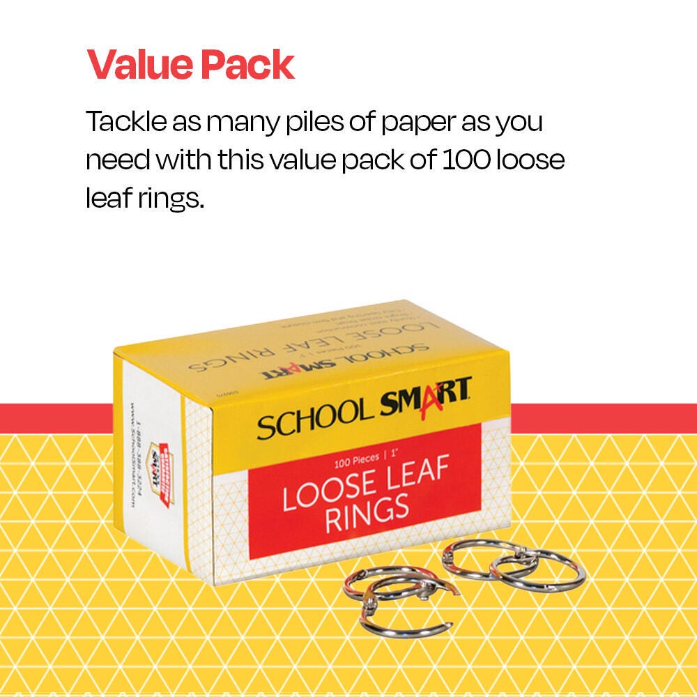 School Smart Loose Leaf Rings, 1 Inch, Nickel Plated Steel, Pack of 100