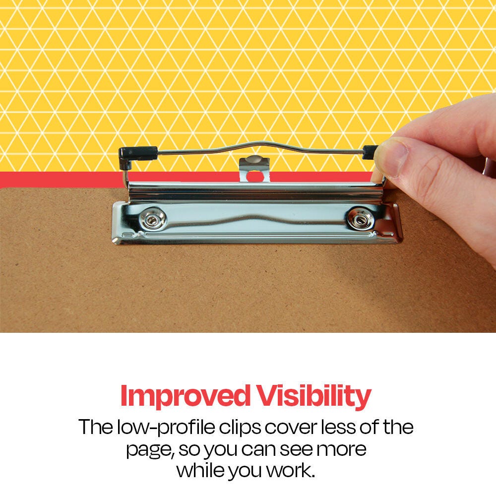 Low-profile clips cover less of the page for easier writing or reading and have an integrated hanging hole for simple storage