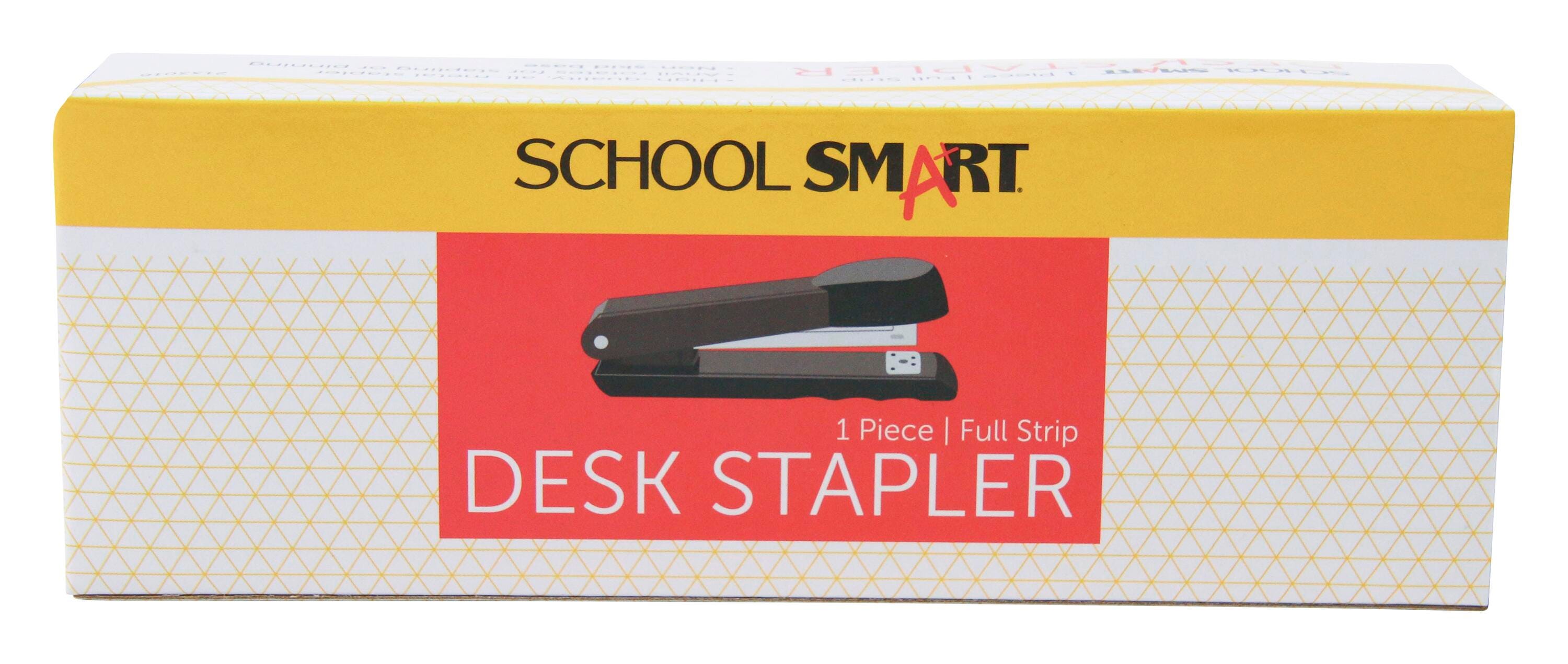 The School Smart Full Strip Stapler is an excellent solution for classroom or office tasks. It fastens up to 10 sheets of 20-lb basis weight paper and features a no-jam inner channel that keeps staples aligned. Its open-channel design makes it easy to load with standard staples. The anvil conveniently rotates to allow users to switch between stapling or pinning functions. It also boasts a full non-skid rubber pad on the bottom for handling comfort and stability when used on top of a table or desk.