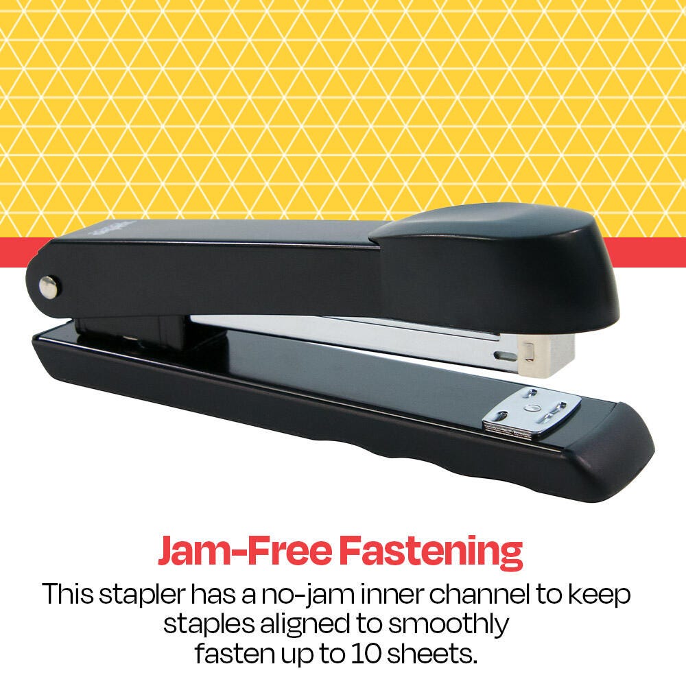 Staples up to 10 sheets at a time, great for work packets, project documents, filing, paperwork, and other light-duty stapling tasks