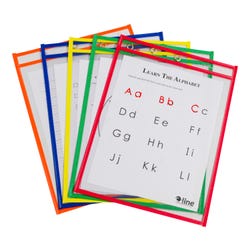 C-Line Reusable Dry Erase Pocket measuring 9 x 12 inches is environmentally friendly and saves paper by preventing copying worksheets over and over. Heavyweight pocket is flexible and used practice math problems, letters, writing skills and more. Pocket easily cleans with soft dry cloth when used with dry erase markers. It is easy for students to use and comes in red, green, yellow, blue and orange primary colors. Pocket is sold as 10 per pack.Features