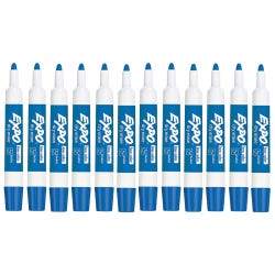 EXPO Low Odor Dry Erase Markers, Bullet Tip, Blue, Pack of 12